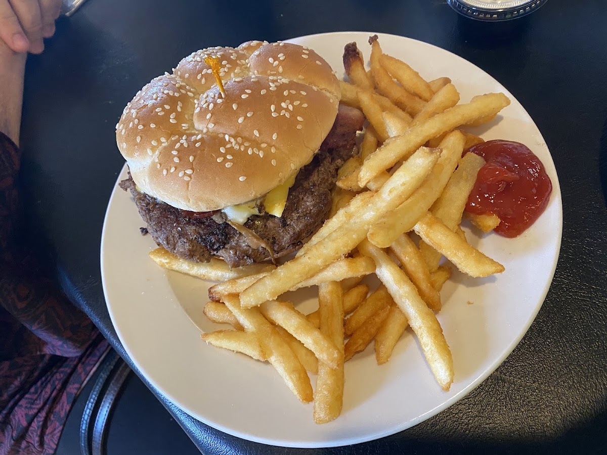 Had a lovely home-town-feel experience. Ate a bacon mushroom swiss burger with fries, chicken strips with fries and a side salad, and yummy cherry cobbler. Delicious burger beef and gooey melted cheese. Cobbler was A1!! Larry and Karen and their staff were all a pleasure to interact with